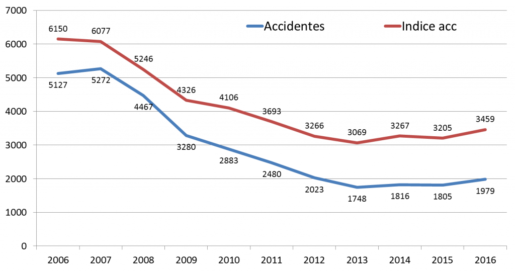 Igualmente se ha reducido de forma importante el número de accidentes de trabajo. Sin duda, debido a la mayor concienciación de las medidas en materia de prevención de riesgos y también como consecuencia de una menor actividad para la cual se requieren jornadas menos exigentes.