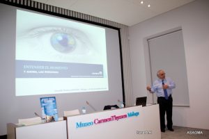 Jesús Alarcón comenzó su conferencia con una frase que desarrollo y dotó de contenido durante la jornada: «Vivir es mucho más sencillo de lo que creemos, cuando lo hacemos conscientemente». Hizo un repaso de los años que han transcurrido durante su carrera profesional en la asociación. Analizó las diferentes etapas, momentos vividos y recordó a las personas que han sido decisivas para él y de las que guarda un grato recuerdo.