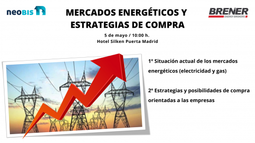 Brener Energy Brokers explicará cuál es la situación de los mercados energéticos, concretamente la electricidad y el gas. También dará a conocer a las empresas las diferentes estrategias y posibilidades de compra existentes en el mercado diario, futuros, compras a largo plazo, PPA, bilaterales, etc.